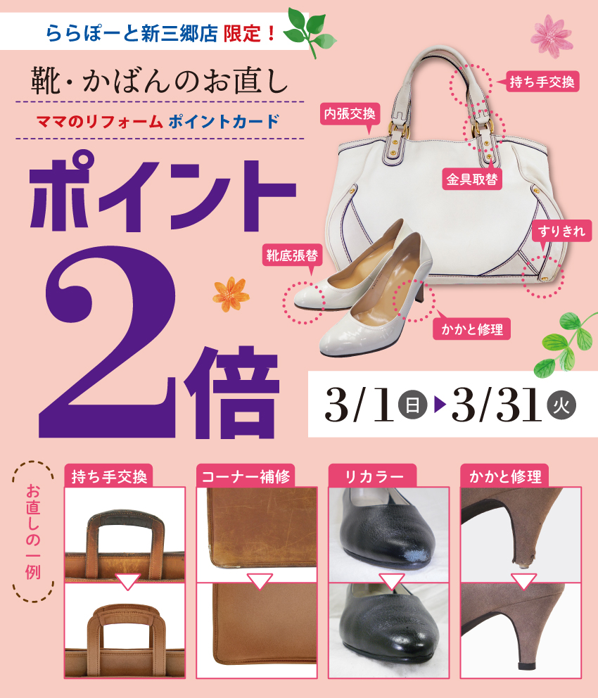 お気に入りの靴・かばんに傷みやほつれなど気になる箇所がございましたら、この機会にぜひご利用ください!お財布などの革小物も承っております。