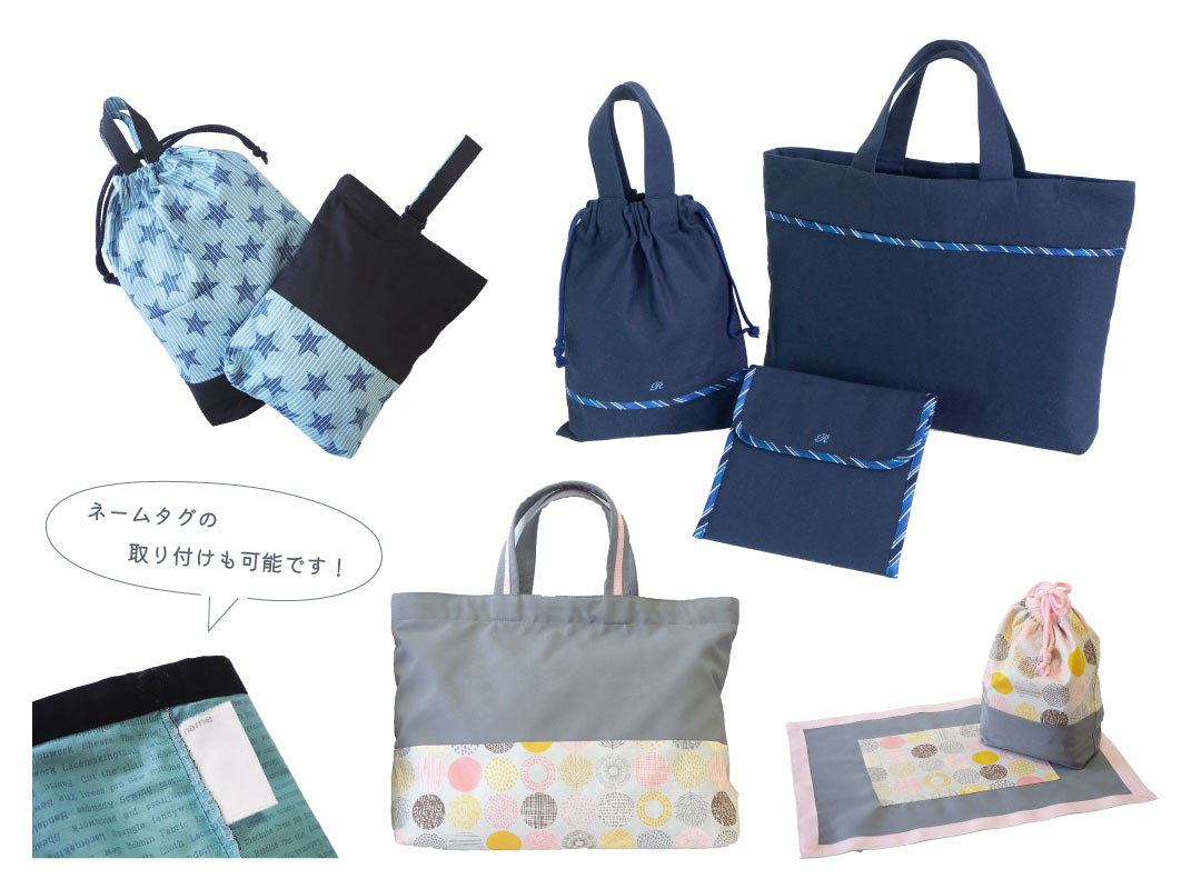 「うちの子が選んだ生地で通園グッズを作りたい」「既製品とは違う、丈夫なつくりにしてほしい」「お受験でも使える洗練されたデザインのものが欲しい」