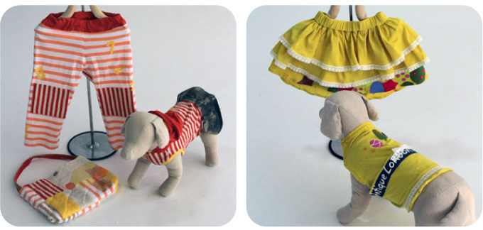 右は、お子様のフリルスカート、お揃いのドッグウエア。
