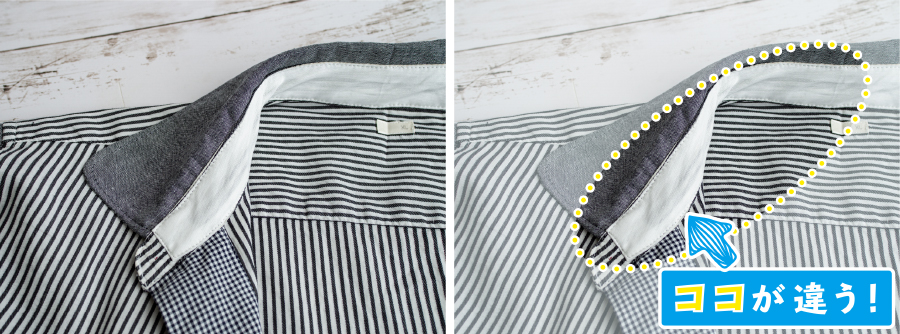 一見、普通のシャツとどこが違うの?という見た目ですが、襟の内側に一工夫!