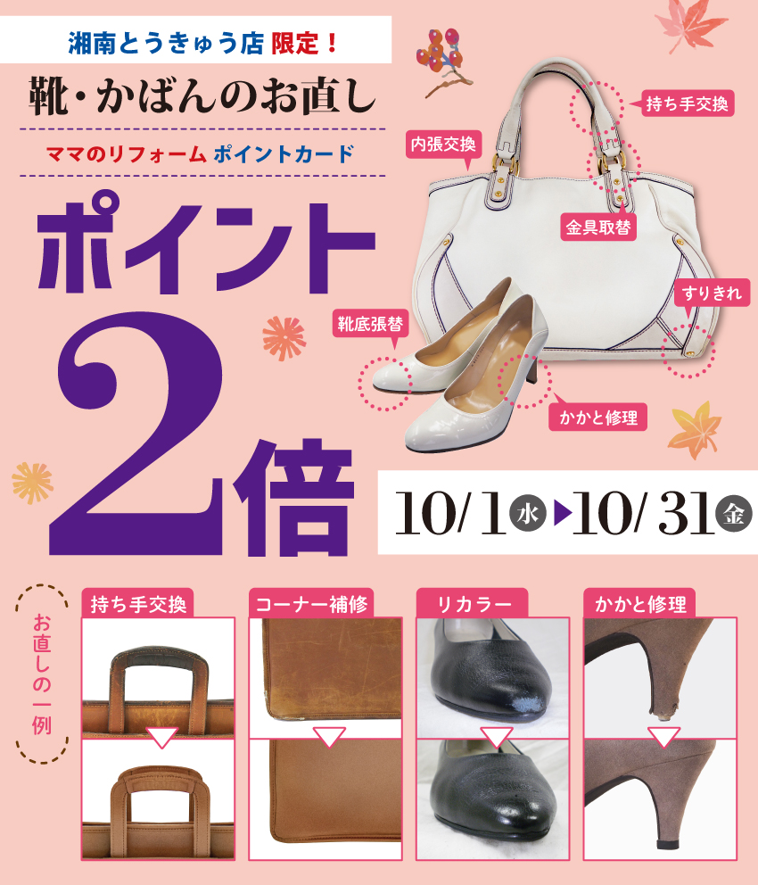 湘南とうきゅう店限定!靴・かばんのお直しポイント2倍!