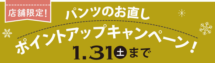 店舗限定!パンツのお直しポイントアップキャンペーン
