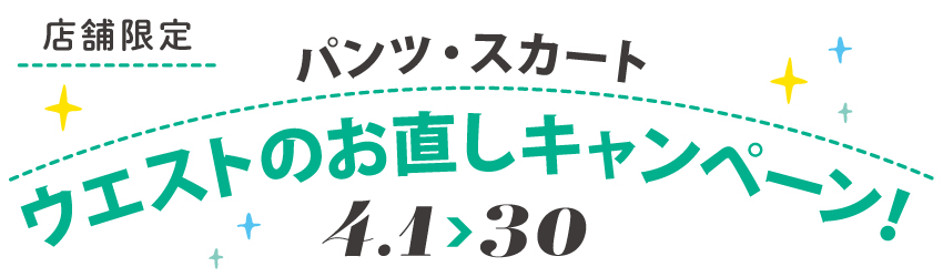 4月1日(水)~4月30日(木)、ウエストのお直しで10%OFFになるキャンペーンを実施いたします。